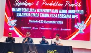 A–TIMES,MANADO–Komisi Pemilihan Umum (KPU)Sulut menyelenggarakan Rapat Koordinasi dan Bimbingan Teknis Peningkatan Kapasitas Protokoler. Bimtek digelar di Hotel Manado Tateli berlangsung selama 3 hari pada Jumat-Minggu(28-30 Juni 2024) dengan Peserta Rakor & Bimtek yakni Ketua dan Anggota Kab/Kota, Sekretaris, Kasubag KUL, Staf Pelaksana yang membidangi Subag Umum dan Jagat Saksana di 15 KPU Kab/Kota se-Sulawesi Utara.Ketua KPU Sulut Kenly Poluan mengatakan tujuan digelarnya rapat ini untuk meningkatkan kemampuan organisasi dalam mengelola protokoler tahapan pilkada 2024.Jika kita lebih paham terkait protokoler ini sangat membantu kita mengelola protokoler kita dengan lebih efektif dan meminimalisir terjadinya kesalahan dalam pelaksanaan kegiatan”, ungkapnya. Pengarahan oleh Anggota KPU Sulut masing-masing yakni Lanny Ointu, Salman Saelangi, Awaluddin Umbola serta Plt. Sekretaris Meidy Malonda.Turut hadir juga pada saat pembukaan Kabag Persidangan dan Protokoler KPU RI Bapak Drs. Ashari dengan menghadirkan Narasumber dari Polda Sulawesi Utara yang membahasa terkait keprotokoleran dalamnya unsur komunikasi, koordinasi dan kolaborasi internal menyangkut prosedur pengamanan objek vital nasional termasuk KPU, serta dari Asisten Teritorial Kodam XIII Merdeka yang membawakan materi terkait kerawanan dan pemetaan tempat-tempat vital di masing-masing Kabupaten di Sulawesi Utara.
