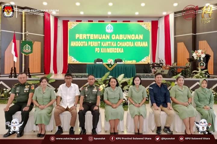 A–TIMES,MANADO–Ketua KPU Sulut Kenly Poluan didaulat menjadi narasumber dalam kegiatan Penyuluhan tentang Pemilihan Tahun 2024 kepada Persit Kartika Chandra Kirana TNI Angkatan Darat Komando Daerah Militer XIII/Merdeka Sulawesi Utara, Selasa(16/1/2024) di Kantor Kodam XIII/Merdeka MManad.Kegiatandibuka oleh Ketua Persit Daerah XIII/Merdeka Ibu Nonny Legowo Jatmiko.