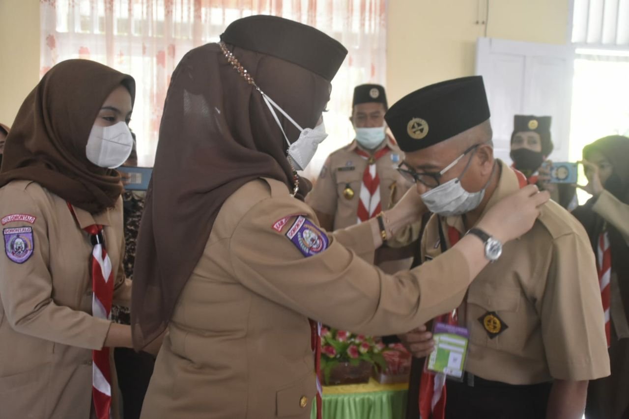A-TIMES,KABGOR – Ketua Kwartir Cabang pramuka Kabupaten Gorontalo, Fory Naway, membuka secara resmi kegiatan Kursus orientasi Kamabigus SD dan SMP Tingkat Kwartir Telaga Cs, Selasa (30/11/2021).