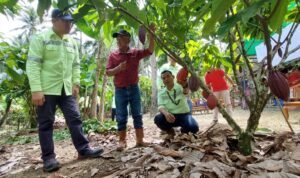 A-TIMES,,BOLMONG – PT. J Resources Bolaang Mongondow (JRBM) dan pendamping PPM (Pengembangan Pemberdayaan Masyarakat) di sanggar tani kelompok di Desa Bakan pada Kamis, (22/07/2023, telah dilaksanakan kegiatan panen perdana tanaman kakao varietas unggul jenis Masamba Cacao Clon (MCC-02) .