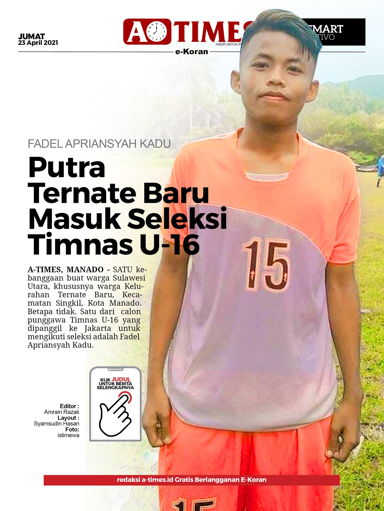 Betapa tidak. Satu dari calon punggawa Timnas U-16 yang dipanggil ke Jakarta untuk mengikuti seleksi adalah Fadel Apriansyah Kadu.
