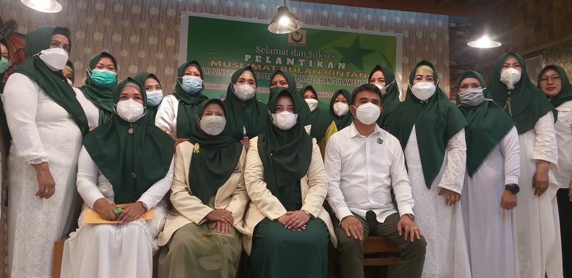 A-TIMES, MANADO – Muslimat Bulan Bintang (MBB) yang adalah badan otonom (banom) Partai Bulan Bintang (PBB), Senin (8/11) kemarin melantik pengurus Pimpinan Wilayah (PW) Sulawesi Utara (Sulut), Gorontalo dan Sulawesi Tengah (Sulteng) periode 2021-2026. Nampak hadir Ketua Umum Pimpinan Pusat (PP) MBB, Hamida Yaucob BA didampingi Sekjend, Yessy Yuga Puspita SE, dan Ketua Umum DPW PBB Sulut, H Asrar SE bersama jajaran pengurus.