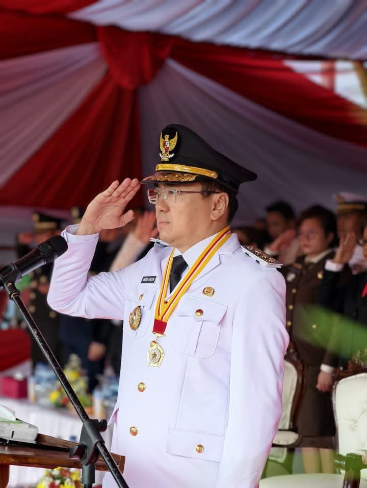 A–TIMES,MANADO– Senin(14/7/2025) hari ini Manado geenap berusia yang ke -402 tahun. Kota multietnis ini terus berkambang. Walikota Manado Andrei Angouw bertindak sebagai Inspektur Upacara dalam rangka HUT Ke 402 Kota Manado di Lapangan Sparta Tikala Manado. Hadir  pada Upacara ini Wakil Wali Kota Manado dr. Richard Sualang, Ketua TP PKK Kota Manado Iren Golda Angouw Pinontoan, Sekretaris TP PKK Kota Manado dr. Merry Sualang Mawardi, Forkopimda Kota Manado, Ketua DPRD Manado Ibu Dra. Altje Dondokambey M.Kes, Apt, para anggota DPRD Kota Manado, Sekretaris Pemerintah Kota dr. Steaven Dandel M.Ph, Ketua Dharma Wanita Kota Manado, Kepala SKPD, Pejabat TNI Polri lainnya, pejabat eselon pemerintah Kota Manado, Para Camat dan Lurah se Kota Manado, FKDM, FPK, FKUB, BKSAUA Manado, para tokoh Masyarakat dan tokoh Agama serta para undangan lainnya. Sebelumnya dibacakan Sejarah Kota Manado. Selesai pembacaan Sejarah Kota Manado, Wali Kota menuju mimbar kehormatan sebagai tanda upacara segera dimulai. Usai Walikota sebagai inspektur upacara menerima laporan komandan upacara bahwa upacara akan dimulai dan dilanjutkan dengan pengibaran bendera merah putih.