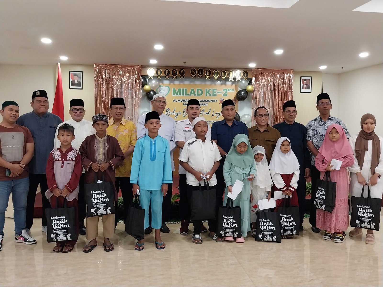 A-TIMES, MANADO—Al Muhabbah Community Manado Sulut yang bergerak dibidang social, Sabtu (17/06/2023) merayakan Milad ke-2 bersama anak yatim piatu di salah satu hotel berbintang di Kota Manado. Nampak hadir Staf Khusus Gubernur Sulut, Hi Dino Gobel yang juga Pembina Al Muhabbah Comunity, Ketua Baznas Kota Manado, Taufiq Permata SE, Ketua Syarikat Islam Kota Manado, Ridwan Lasabuda, Penceramah, Ustad Abdurahman Mahrus MA dan Ketua Al Muhabbah, Dra Murhayati Pakaya bersama jajaran pengurus.