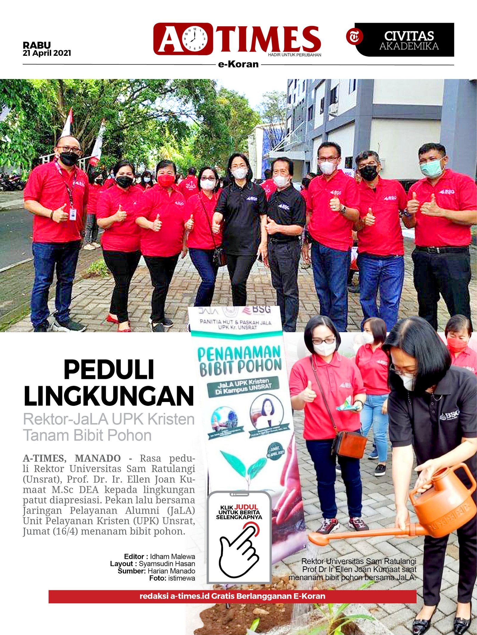 A-TIMES.ID, MANADO — Rasa peduli Rektor Universitas Sam Ratulangi (Unsrat), Prof. Dr. Ir. Ellen Joan Kumaat M.Sc DEA kepada lingkungan patut diapresiasi.