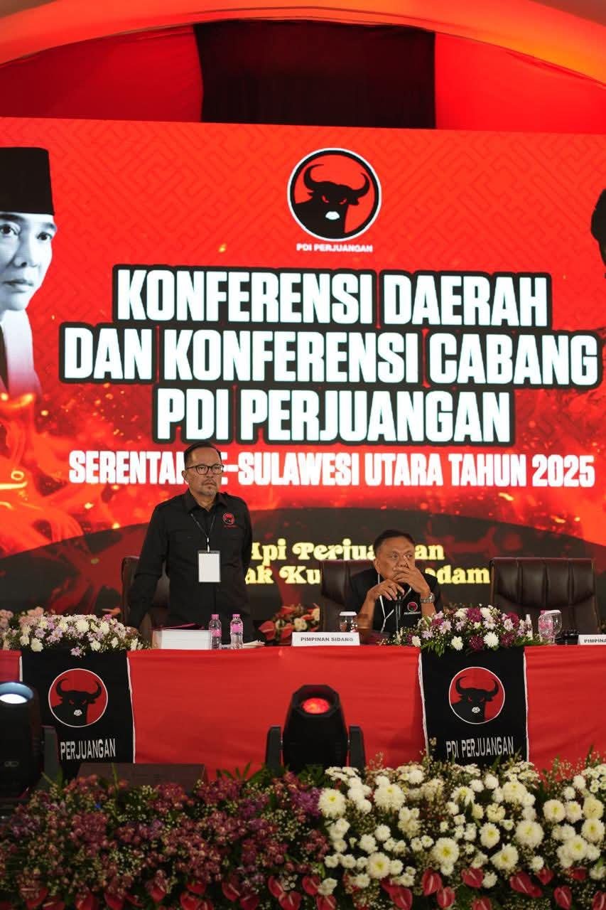 Sekretaris DPD PDI Perjuangan Sulawesi Utara, Reza Rumambi, membacakan langsung keputusan DPP tersebut di hadapan peserta Konfercab. Dalam keputusan itu, DPP PDI Perjuangan menetapkan dr. Richard H.M. Sualang sebagai Ketua DPC PDI Perjuangan Kota Manado, dengan Jeffry Polii dan Dra. Aaltje Dondokambey, M.Kes., Apt., sebagai calon personalia.” Terima kasih karena masih dipercayakan partai untuk menjadi Ketua DPC bersama rekan – rekan pengurus, kader – kader militan dan loyal. Ini menjadi komitmen kami untuk terus berjuang bagi masyarakat, khususnya di Kota Manado,” kata Sualang saat sambutan. Sebelumnya pada tahapan sidang konferda Wakil Wali kota Manado ini menjadi salahsatu pimpinan sidang bersama Olly Dondokambey dan Ahmad Basarah dari DPP PDI-P. Sementara pada Konferda tersebut Olly Dondokambey terpilih sebagai ketua DPD PDI Perjuangan Sulut, Bendahara Andrei Angouw dan Reza Rumambi sebagai sekretaris . Konferda dihadiri seluruh ketua DPC PDI P dan jajaran pengurus partai se Sulut.” Mari kita terus menjadikan PDI P sebagai rumah rakyat, memperjuangkan aspirasi rakyat,” tandas Sualang (*)