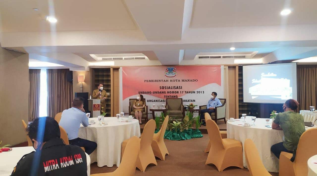 A-TIMES.ID, MANADO — Badan Kesatuan Bangsa, Politik dan Linmas (Kesbangpol) Kota Manado, Selasa (6/7) kemarin menggelar kegiatan sosialisasi Undang-Undang Nomor 17 Tahun 2013 tentang organisasi kemasyarakatan di Hotel Quality dan turut dihadiri sejumlah organisasi kemasyarakatan dan organisasi kepemudaan yang ada di Kota Manado.