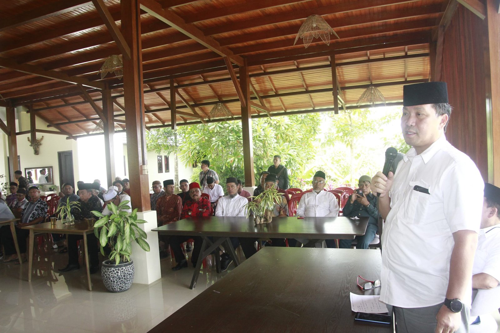 “Saya sangat senang bisa berkumpul bersama bapak-bapak semua, para Imam Badan Ta’Mirul Masjid se-Minahasa. Meskipun hari ini cuaca kurang mendukung, tapi semangat yang ditunjukkan oleh bapak-bapak sekalian patut kita acungi jempol. Ini menunjukkan bahwa kita semua memiliki niat yang sama, yaitu membangun Tanah Bumi Nyiur Melambai ini dengan penuh semangat kebersamaan,” ujar Steven Kandouw. Ia  mengajak kita semua untuk terus menjaga dan merawat toleransi antarumat beragama. Kita semua hidup di Sulawesi Utara, tanah yang penuh dengan keberagaman. Mari kita tunjukkan bahwa dengan saling menghormati dan menjaga satu sama lain, Sulut akan semakin kuat.” Semangat dan ikhtiar kita semua dalam memajukan daerah ini pasti diridhoi oleh Allah SWT,” tegas Steven.