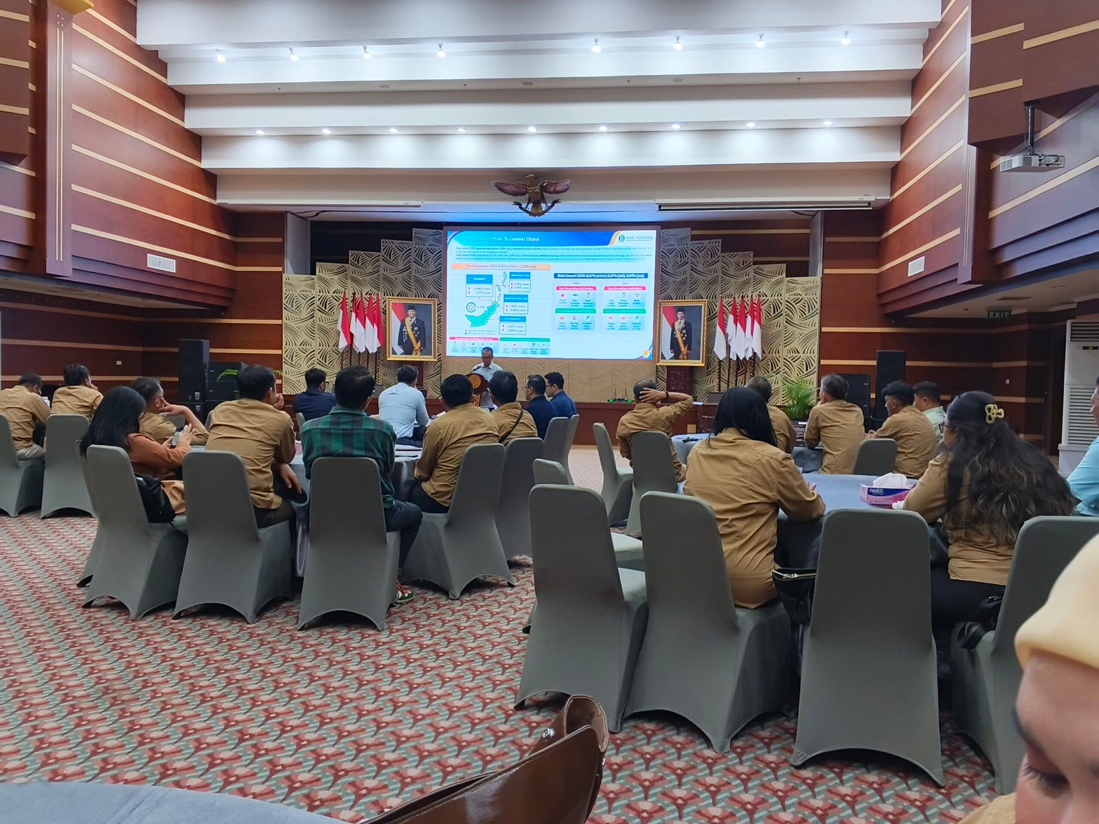 A–TIMES, MANADO– Meski ditengah kondisi ekonomi global yang serba ketidakpastian harga sejumlah bahan pangan di Sulut masih tetap stabil. Ini karena kolaborasi antara Pemda dan instansi terkait terus diperkuat. Data yang dirangkum dari Bank Indonesia Perwakilan Sulut, tahun 2025, Sulut mencatatkan tingkat inflasi terendah secara nasional sebesar 1,23% (yoy). Capaian inflasi yang rendah tersebut terutama dipenaruhi oleh panen raya dan pasokan yang melimpah dari daerah pemasok sepanjang tahun sehingga mampu menjaga stabilitas harga komoditas pangan utama. Hal ini dikatakan kepala Perwakilan BI Sulut Joko Supratikto pada Kamis (26/2/2026) di aula kantor bank Indonesia. Ia menegaskan hal ini karena  terjaganya kenaikan harga pangan di Sulut  Secara  tahunan,emas perhiasan menjadi pendorong utama inflasi seiring kenaikan harga emas global karena pengaruh gejolak geopolitik. Di sisi lain, daging babi menahan inflasi seiring pemulihan stok pasca wabah African Swine Fever (ASF) yang sebelumnya menyebabkan kelangkaan pasokan.