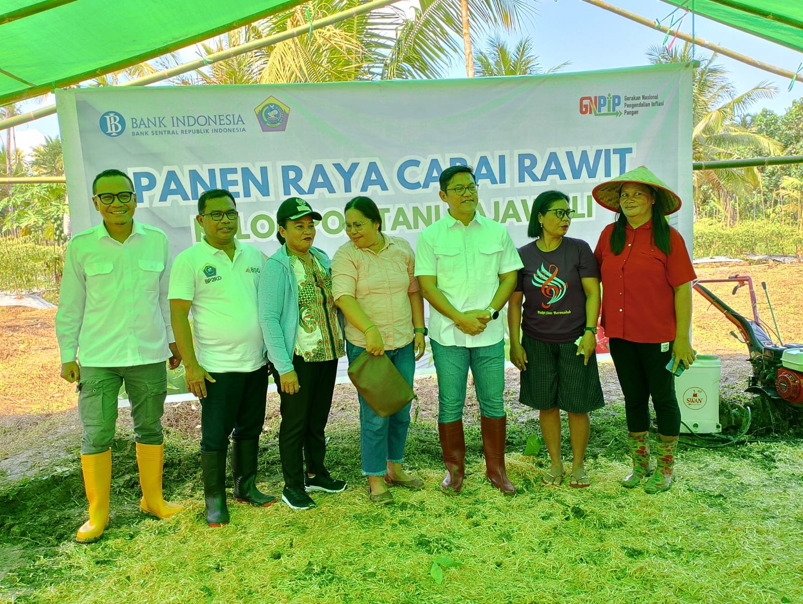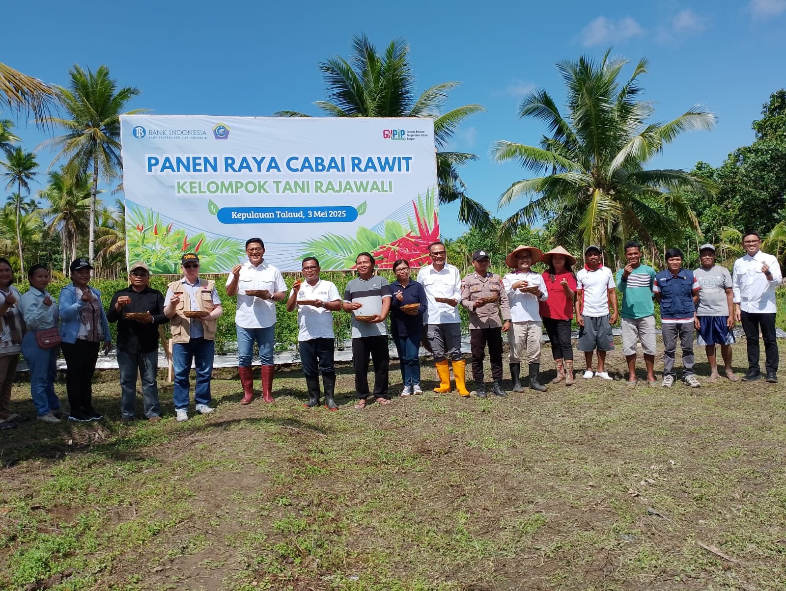 PROAKTIF: Kepala Perwakilan BI Sulut Andry Prasmuko bersama Koptan Rajawali Talaud usai panen cabe Rawit(*)