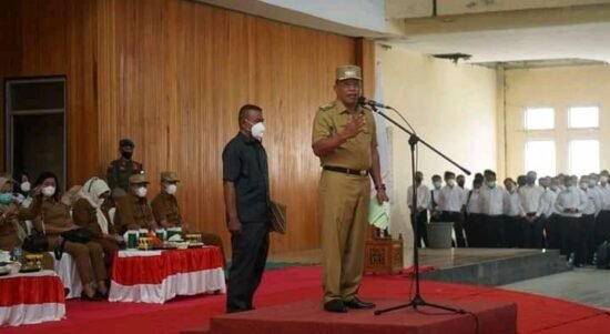 A-TIMES, BOLMUT – Apel perdana di tahun 2022 Pemerintah Kabupaten Bolaang Mongondow Utara (Bolmut) digelar di auditorium kantor Bupati Bolmut, Senin (3/1). Dalam sambutanya Bupati Bolmut Depri