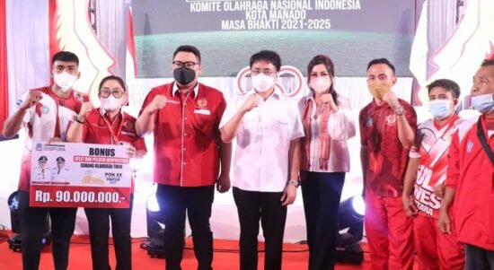 A-TIMES, MANADO – Atlit-atlit Kota Manado yang meraih medali di Pekan Olahraga Nasional (PON) Papua, Selasa (26/10) kemarin banjir bonus dari Walikota, Andrei Angouw dan Wakil Walikota,