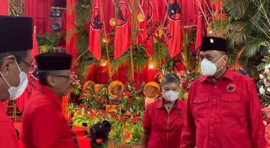 A-TIMES,MANADO — Bendahara DPP PDI Perjuangan Olly Dondokambey yang juga Gubernur Sulut Senin (10/1) menghadiri acara Puncak HUT PDI Perjuangan ke-49 dengan mendengarkan Pidato Politik Ketua Umum