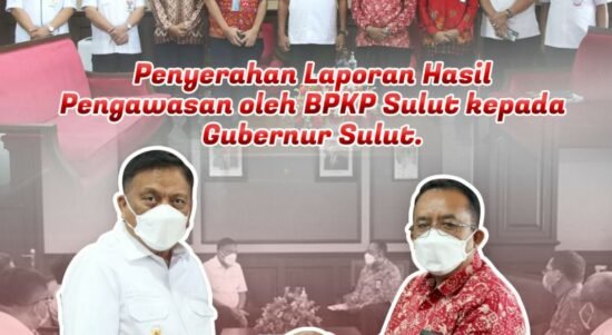 A-TIMES,MANADO — Kepala Badan Pengawasan Keuangan dan Pembangunan (BPKP) Provinsi Sulawesi Utara (Sulut), Beligan Sembiring, menyerahkan Laporan Hasil Pengawasan (LHP) tahun 2021 kepada Gubernur Olly Dondokambey di