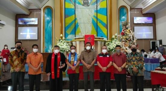 A-TIMES,BITUNG — Walikota Bitung Ir Maurits Mantiri Minggu (5/12/2021), menerima Surat Keputusan (SK) Komisi Pria / Kaum Bapa Sinode GMIM tentang, Panitia Pelaksana Rapat Pilihan Calon Komisi