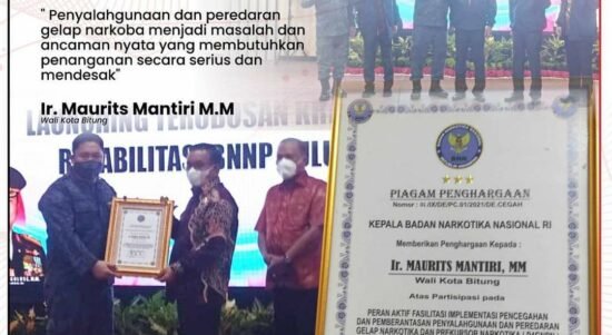 A-TIMES,BITUNG – Wali Kota Bitung Ir. Maurits Mantiri M.M salah satu kepala daerah di Sulut yang diundang Badan Narkotika Nasional (BNN). Mantiri menerima penghargaan dari Kepala BNN