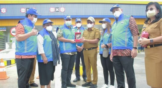A-TIMES,BITUNG — Wali Kota Bitung Ir Maurits Mantiri menerima kunjungan Komisi VI DPR RI di gerbang Tol Bitung. Kunjungan meninjau progres pengembangan destinasi wisata Super prioritas(DPSP) Manado