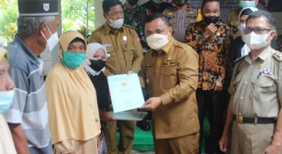 A-TIMES,LIMBOTO – Wakil Bupati Gorontalo Hendra Hemeto menyerahkan puluhan Sertifikat Tanah milik warga di Desa Molanihu, Kecamatan Bongomeme, Senin (17/1). Penyerahan sertifikat warga Program Pendaftaran Tanah Sistematis