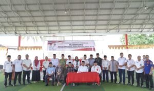 Rapat digelar secara off line maupun virtual oleh berbagai pemangku kepentingan di Lapangan Futsal komplek perkantoran panango Bolsel, Rabu (2/7/2025).