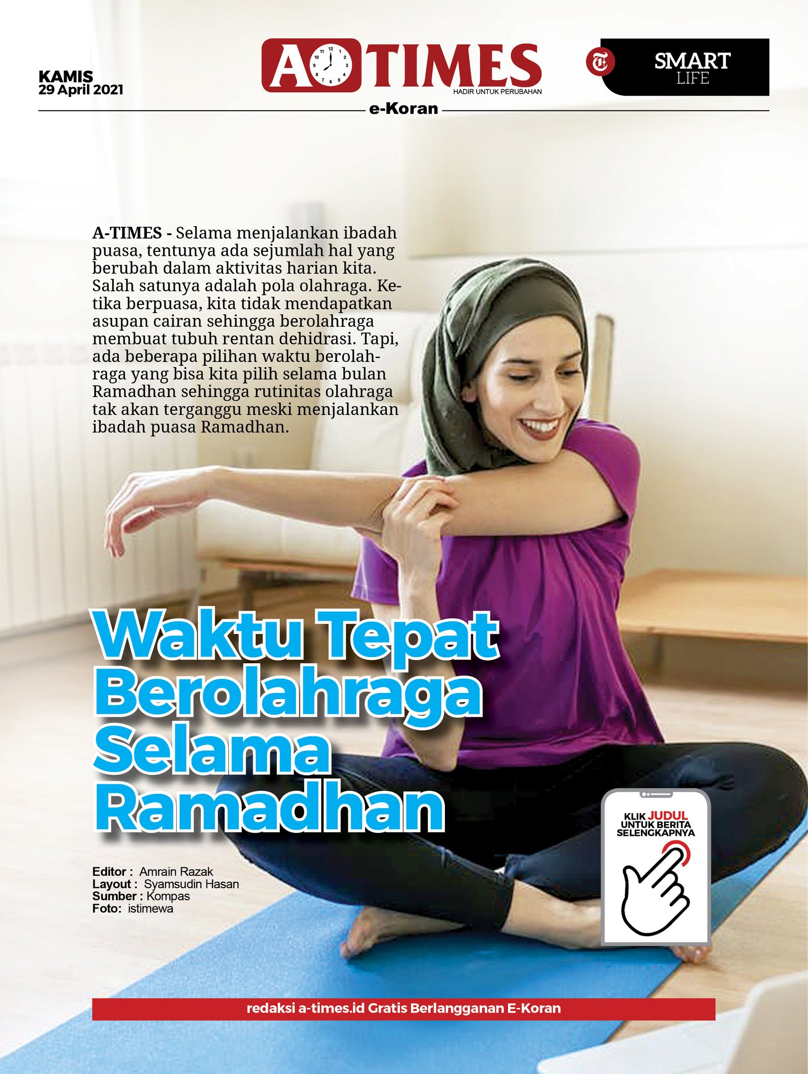 A-TIMES.ID – Selama menjalankan ibadah puasa, tentunya ada sejumlah hal yang berubah dalam aktivitas harian kita. Salah satunya adalah pola olahraga. Ketika berpuasa, kita tidak mendapatkan asupan cairan sehingga berolahraga membuat tubuh rentan dehidrasi.