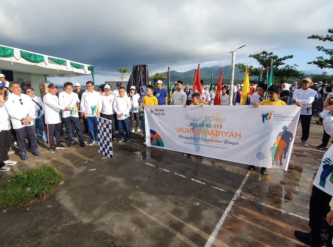 Setelah itu didampingi Ketua Panitia Milad ke 113 M Sofyan dan ketua PWM Sulut Masrur Mustamat, Wali Kota AA bersama Prof Muhadjir bersama sama mengangkat bendera start.