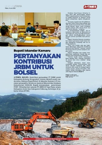 A-TIMES, BOLSEL- Kontribusi pemasukan PT JRBM untuk Foto : istimewa