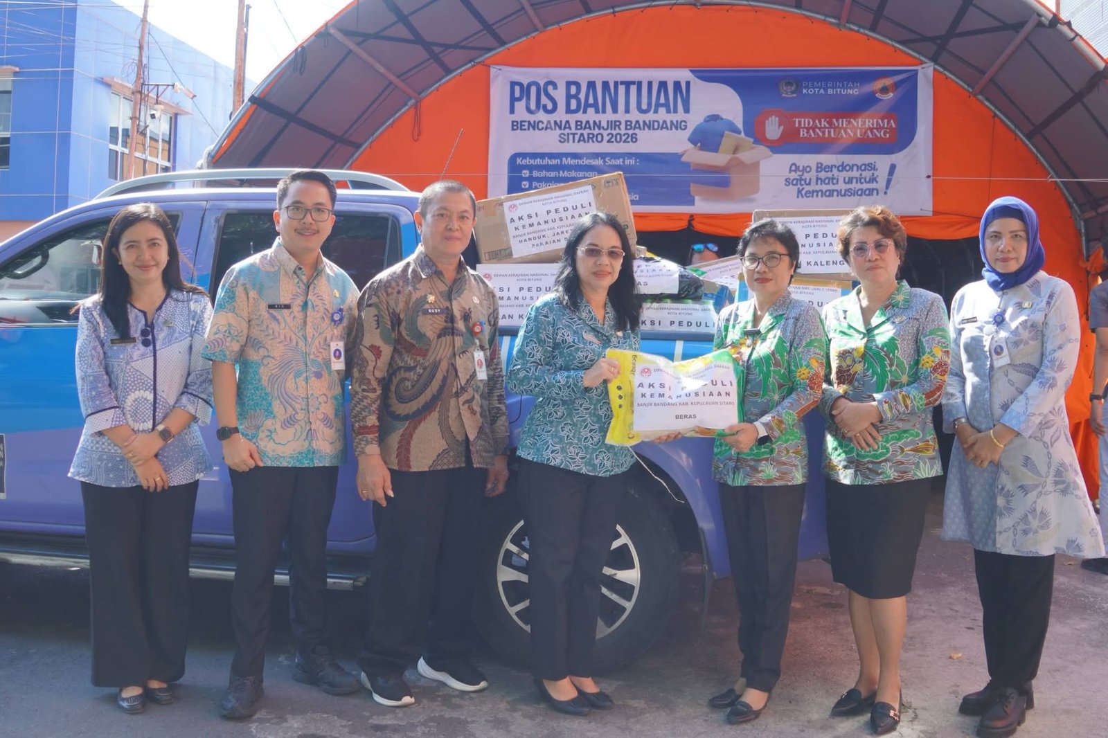 Istri wali kota Bitung ini menyerahkan bantuan kemanusiaan melalui BPBD Kota Bitung Kamis,(15/1/2026) .